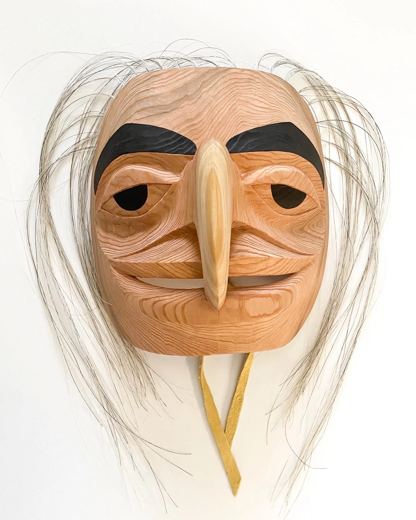 Hawk Mask - Zachary Carothers from PTM gave me this cedar round cut from a tree on his property in Oregon 2 years ago, this is a carving from that cedar.