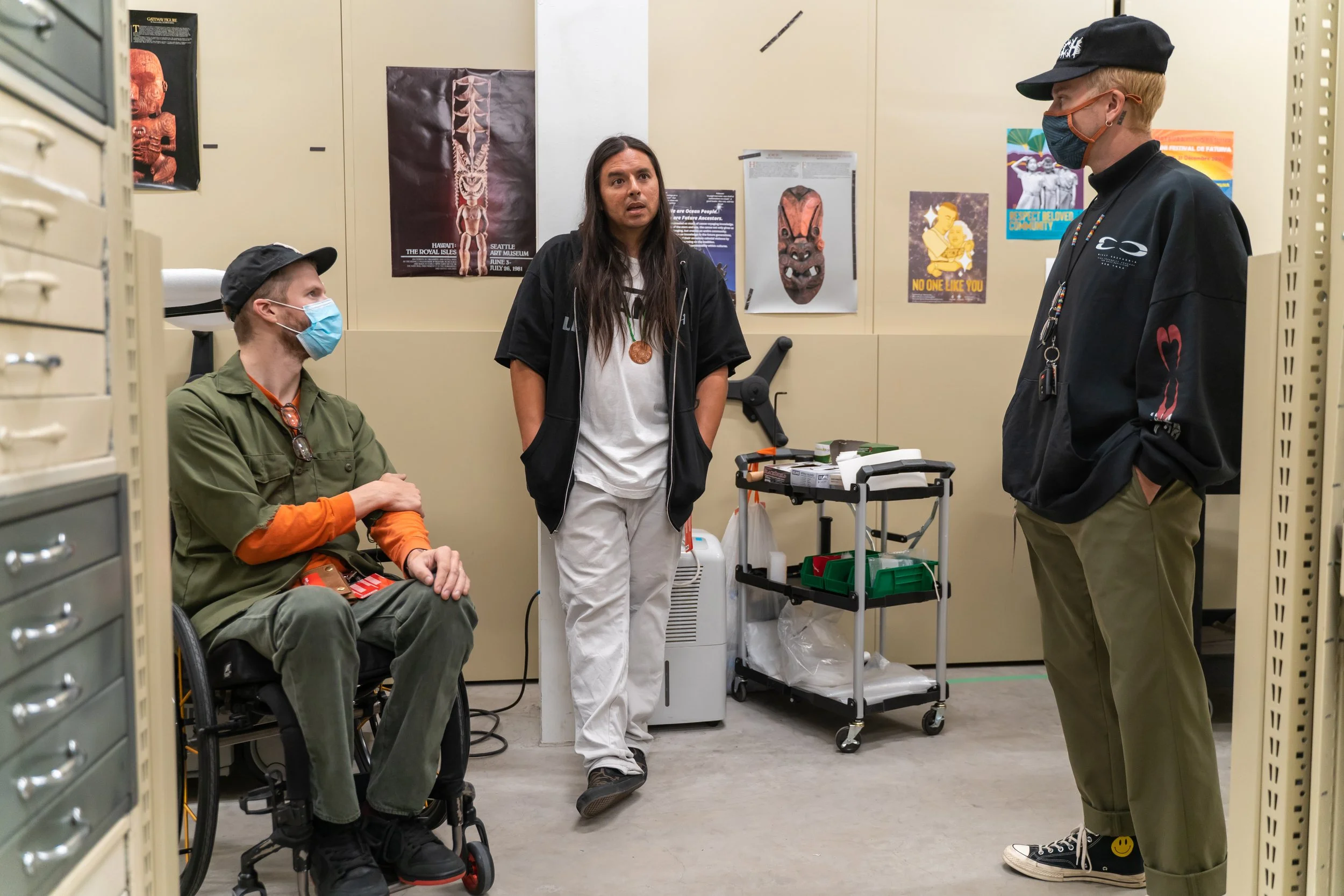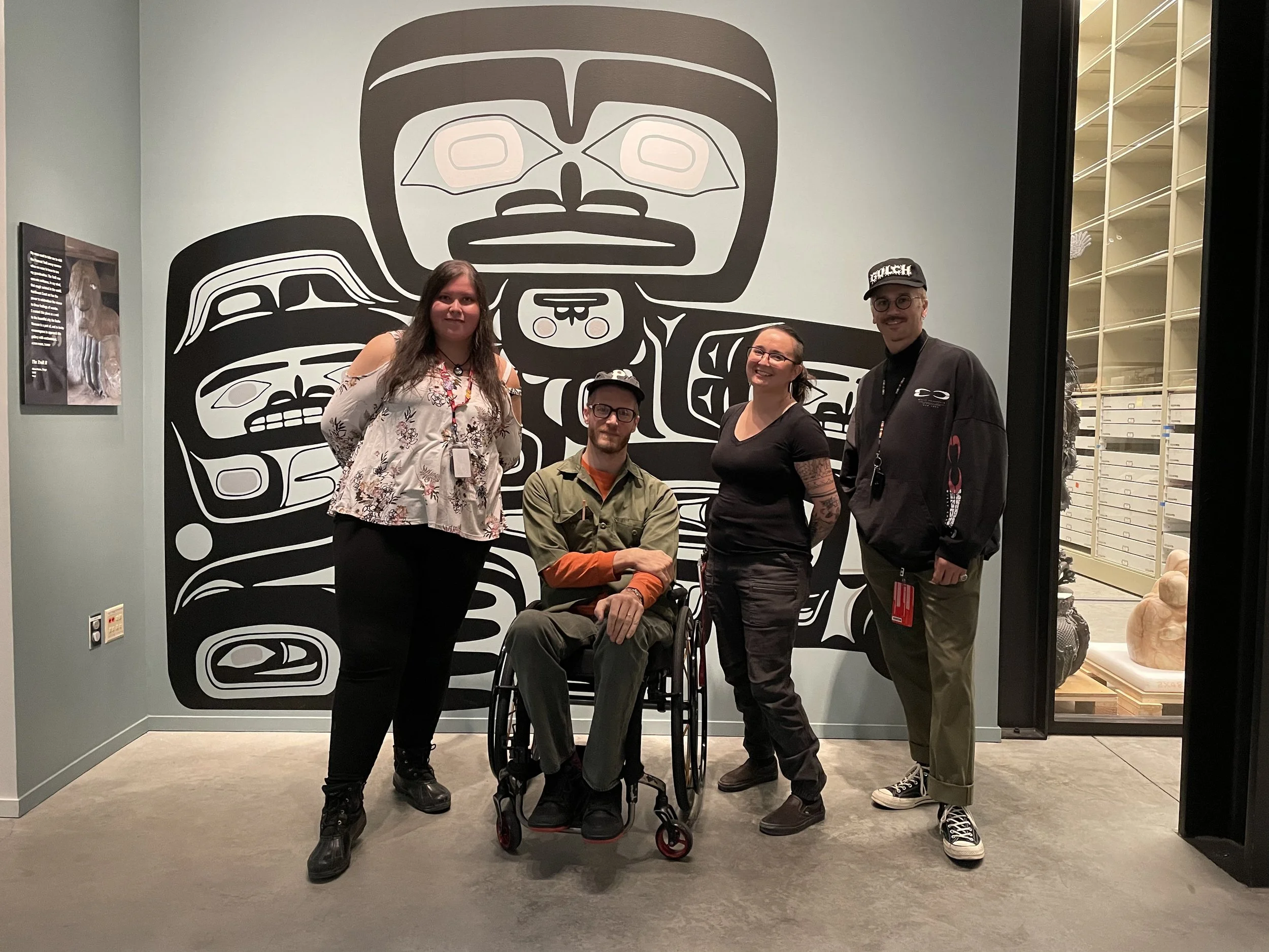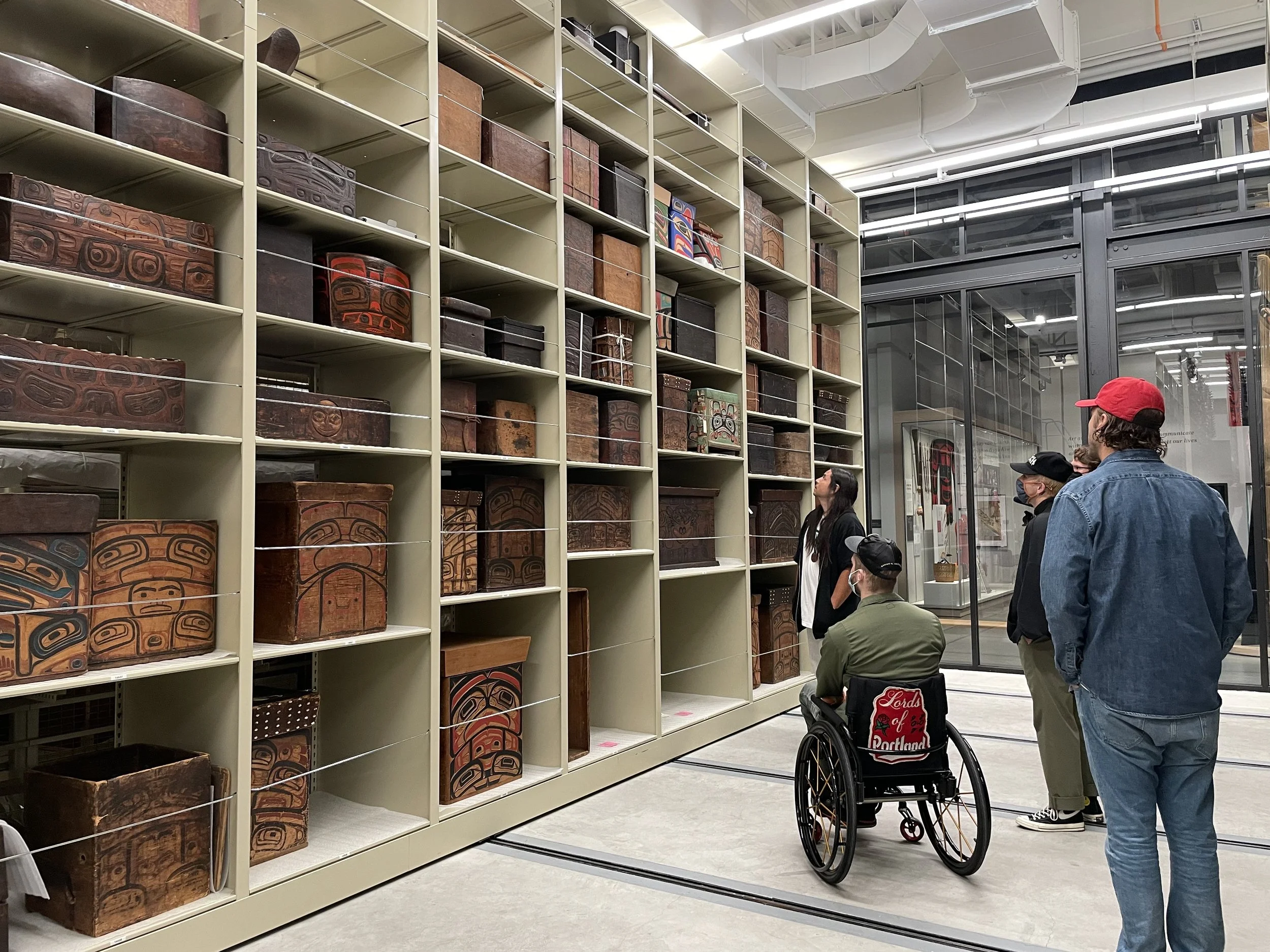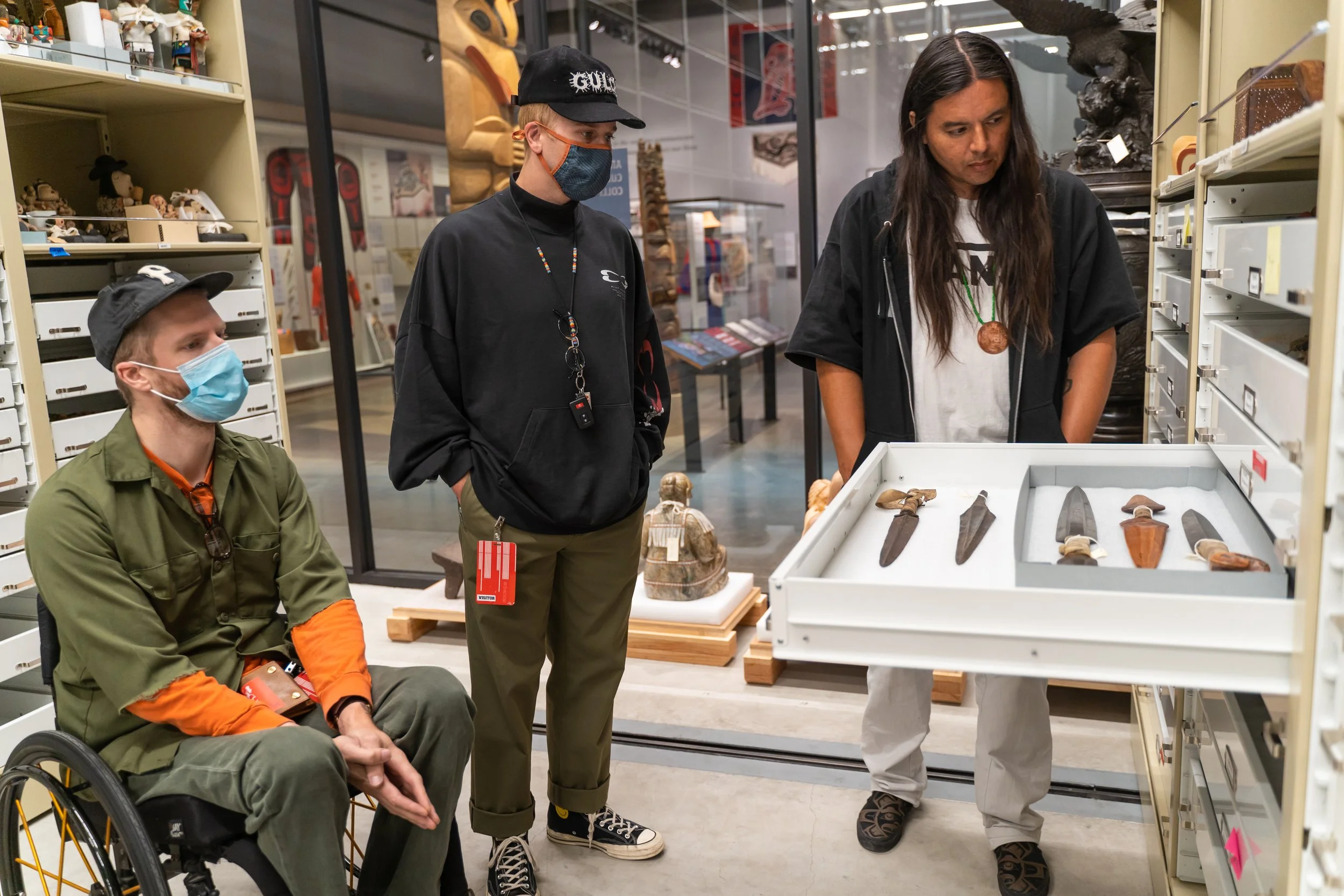 I have been a fan of the work Portugal The Man has been doing for Indigenous people for years. They provide an incredible platform for our voice to be heard. I’ve been fortunate to connect with the group, giving them Lib-Tech snowboards, small way of saying “thank you” for the work they’ve done. We connected at the Burke Museum in Seattle recently. I was there on a research grant to study their entire Tlingit collection. John Gourley asked me to do the art for their upcoming collaboration. It’s a Teton Gravity Research x Portugal The Man collection. We spent 2 days filming a film piece to highlight Tlingit art, and the history of our people. It was incredible.